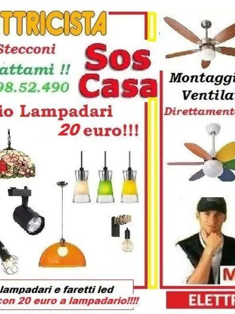 Mi occupo ,oltre alle riparazioni di guasti elettrici, al montaggio di ventilatori a soffitto, citofoni, ecc ecc.